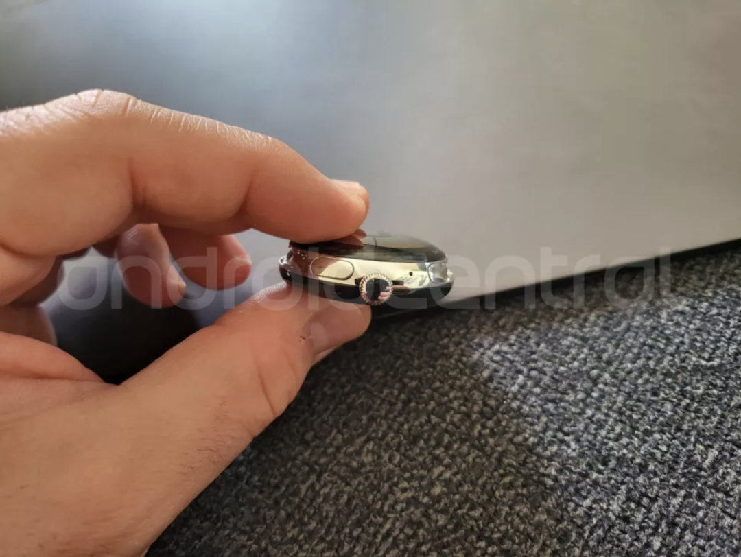 之前有传言称谷歌Pixel Watch将有一个旋转表冠和两个隐藏的按钮,不过从上图有点难以分辨,但如果这是其传闻中的手表,那么表冠旁边肯定至少有一个按钮。