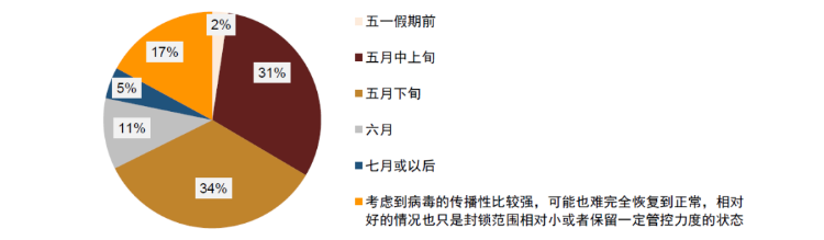 投资者对中国恢复相对正常的国际通航的具体时间较为不确定,但较多数投资者认为至少需要等至明年。具体来看,12%的投资者认为需等至今年三季度,22%的投资者则认为需等至四季度,剩余66%的投资者认为至少需等至明年。