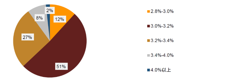 从调查结果来看,多数投资者认为还会有进一步下降,52%投资者认为存款和理财负债成本在政策引导下还会逐步缓慢下降,24%的投资者认为银行还会下调;只有少数投资者不看好继续下调的空间,11%的投资者认为下调是一次性的,另有13%认为后续甚至会重新上升。从我们观察来看,银行存款和理财的负债成本相对刚性。对于银行存款,以相对更为灵活调整的大额存单来看,在没有政策引导的常规时期较少变动。2021年6月存款自律机制调整上限之后,大额存单利率发生了较大幅度的变化,一年期以下的利率上调,一年期以上的利率下调,2021年7月至今其利率则基本维持不变。虽然此次存款自律机制调整以银行自愿为主而非强迫,但考虑到作出调整的银行可能对其MPA考核有利,我们认为不排除部分中小行还是会自主的对存款利率浮动上限进行一定程度的下调。对于银行理财而言,由于理财普遍净值化,其利率调整主要体现在业绩基准上。我们可以看到固定收益类的净值型产品业绩基准也是基本不变的,混合类的业绩基准调整幅度相对更大一些。