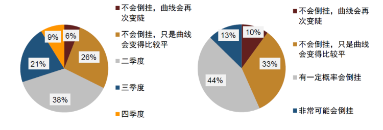 图表10:您认为今年美国国债收益率曲线在什么时间会开始持续倒挂(以10年期和2年期国债来衡量)?(左:本期;右:上期)
