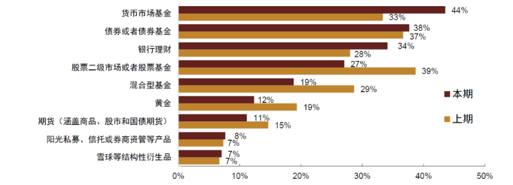 问题25:去年以来市场波动加剧,您目前的理财资金投向可能偏向哪些产品?(可多选,但选择投资比例较高的产品)