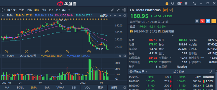 值得一提的是,Meta在2月初的财报中已经暴过一次雷,当天大跌26%也将美股历史最大单日市值蒸发纪录推升至2370亿美元。截至周二收盘,公司股价进一步走弱,年内跌幅已经扩大至46%。