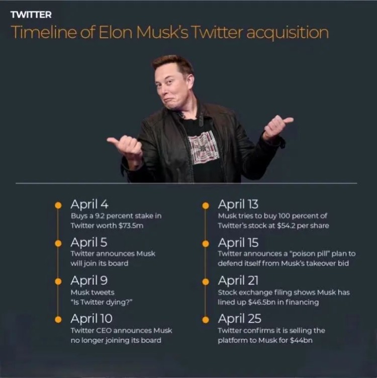 盘算一下,从蓄谋已久到正式出手,再到斗智斗勇向推特频频施压,最后突破重围成功猎杀,这位世界首富只用了30天左右时间。
