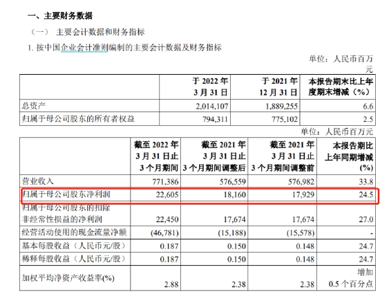 中国石化:一季度净利润226.05亿元,调整后同比增长24.5%。