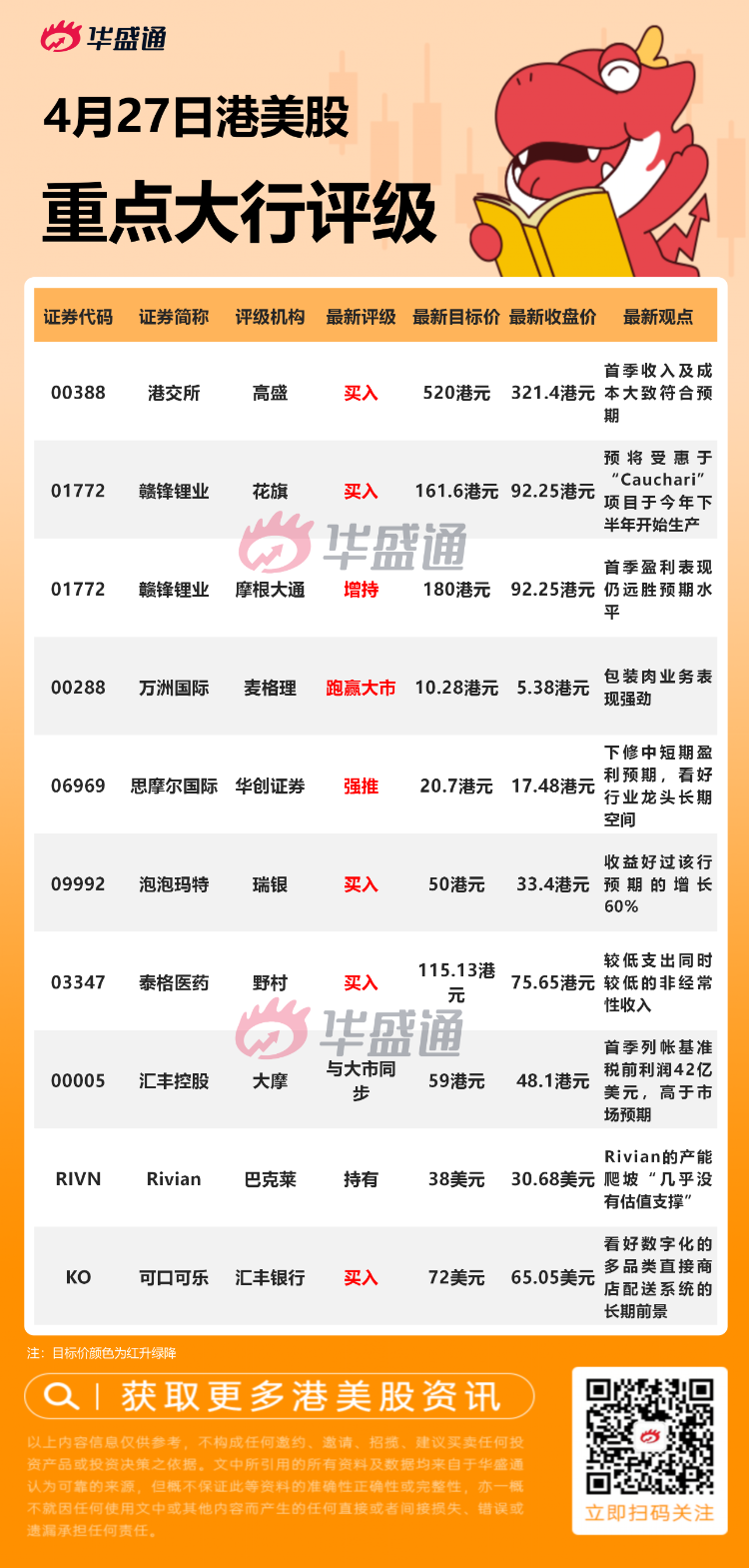 摩根大通:维持赣锋锂业 $01772.HK 【增持】评级,目标价180港元