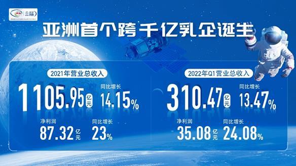 而同时披露的2022年一季报显示,伊利股份延续高增长势头。当季营业总收入达310.47亿元,同比增13.47%;净利润达35.08亿元,同比增24.08%,营收、净利均在高基数上录得双位数增长。