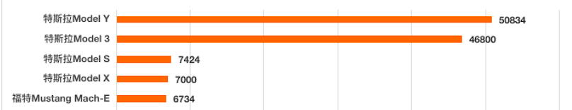 回到美国本土,Mach-E的销量同样不尽如人意,虽然排名第三,但全年销量还不到3万辆。而特斯拉两款车型就超过30万辆,占据着无可撼动的主导优势。
