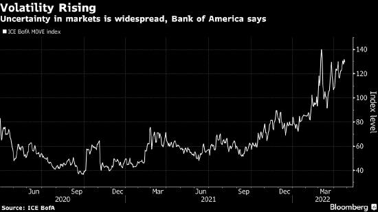 美银策略师Mark Cabana和Bruno Braizinha在一份报告中写道,“现在市场中的不确定因素太多了,主要受到宏观经济、通胀以及地缘政治紧张局势驱动,这些情况需要一段时间才能理清。对于这种不确定性的增多,全球央行也负有一定责任。”