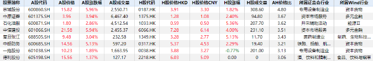 深股通中,浙江世宝、申万宏源、新华制药、东江环保、中集车辆、郑州银行、晨鸣纸业等位列溢价榜前列。投资者可关注相关个股估值回归机会。