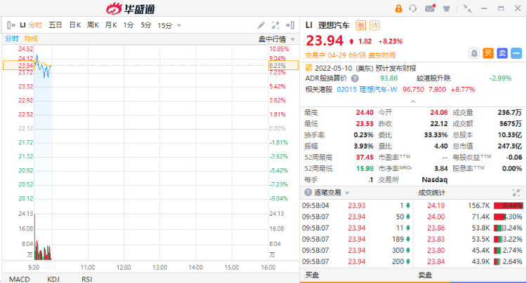 华盛资讯4月29日消息,美股盘初,新能源车板块集体拉升,截至发稿,理想汽车(LI)、小鹏汽车(XPEV)涨超8%。
