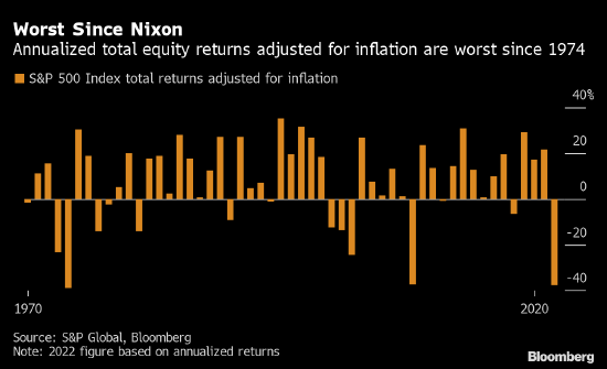 今年以来,由于投资者担忧经济陷入衰退以及美联储为遏制通胀而激进紧缩政策,全球股市表现不佳。根据汇编的数据,标普500指数自1月以来已下跌近11%,经通胀调整后势将创出1974年以来最差年度表现。