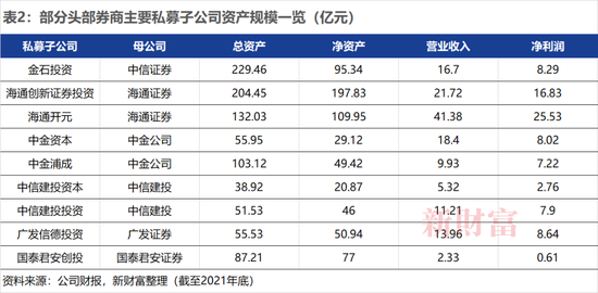 资产规模方面,海通证券旗下的海通创新证券投资和海通开元,总资产合计336.48亿元,净资产合计307.78亿元,2021年净利润合计达42.36亿元。