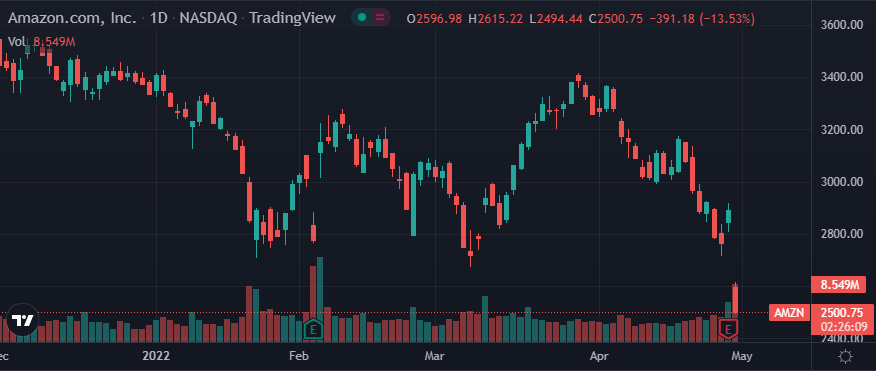大型科技股方面,亚马逊大跌13.6%。公司昨日盘后公布的财报显示,一季度业绩远逊预期,自2015年以来首次季报亏损。其中,亚马逊对Rivian的投资录得76亿美元的亏损。