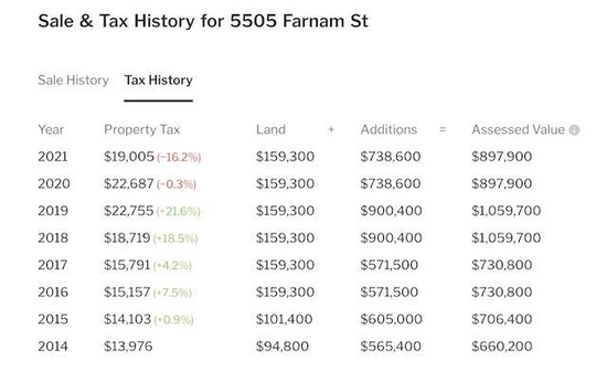 有意思的是,另一家美国房地产网站Redfin的数据显示,当地政府对该住宅的估值在2020年大幅下降了约16.2万美元,因为该估值是房产税(property tax)缴纳的依据,从而令此宅房产税大降。