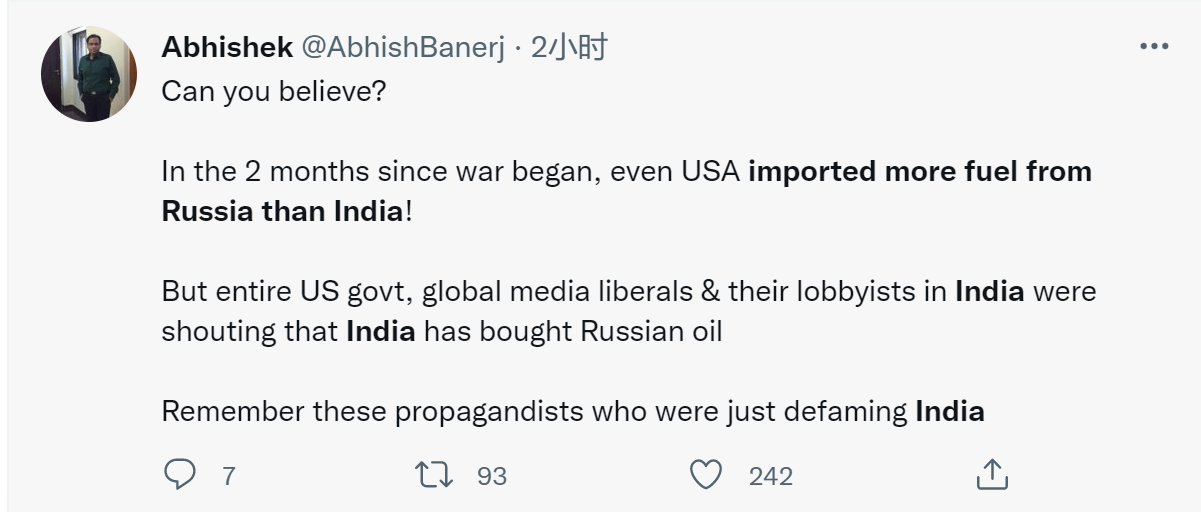 但是整个美国政府,全球媒体自由主义者和他们在印度的游说者都在大喊,印度已经购买了俄罗斯石油