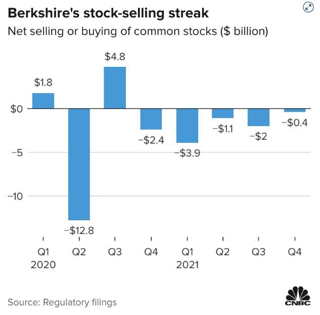 在今年2月的致股东信中,伯克希尔2021年底的现金储备约为1467.2亿美元,其中1200亿美元以美国国债的形式持有,全部在一年之内到期。当时巴菲特解释说,他和芒格在曾经是他们标志性的大型收购尝试中,几乎没有发现什么能“激发”他们的兴趣。相反,两人发现,回购股票是目前配置现金的最佳方式。