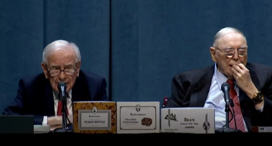 巴菲特称回归线下很激动,这次现场也带来了11吨喜诗糖果供前来参会的股东选购,他还现场带起货来,调侃喜诗糖果的包装封面玛丽女士和自己很像,而98岁的芒格则在旁边现场试吃。