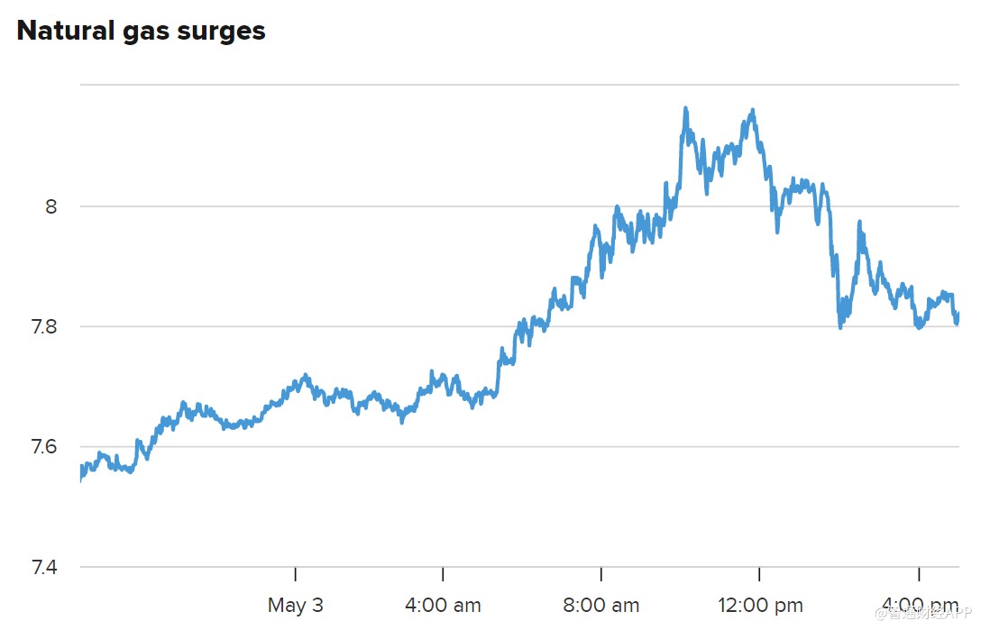 过去两个交易日,天然气价格上涨了12%以上。4月份的涨幅接近30%。对美国液化天然气需求的激增也推动了价格的迅速上扬,且增加了整个经济的通胀压力。消费者的电费正在上升,因为公用事业公司将其较高的投入成本转嫁给了消费者。