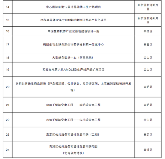 “白名单”共包括24个重大工程建筑工地,含腾讯大型绿色数据中心、阿里巴巴大型绿色数据中心、中芯国际临港12英寸晶圆代工生产线项目、浦东国际机场三期扩建工程、美的集团第二总部项目、药明生物全球创新生物药研发制药一体化中心、和辉光电第六代AMOLED生产线产能扩充项目等。