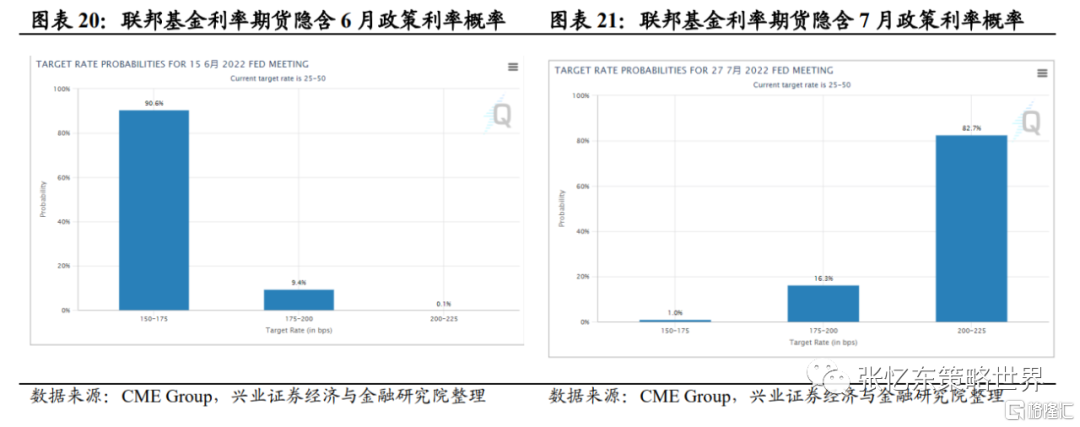 CME联储观察工具(FED watch tool)显示,市场预计,联储5月加息50bp,6月加息75bp,7月加息50bp。