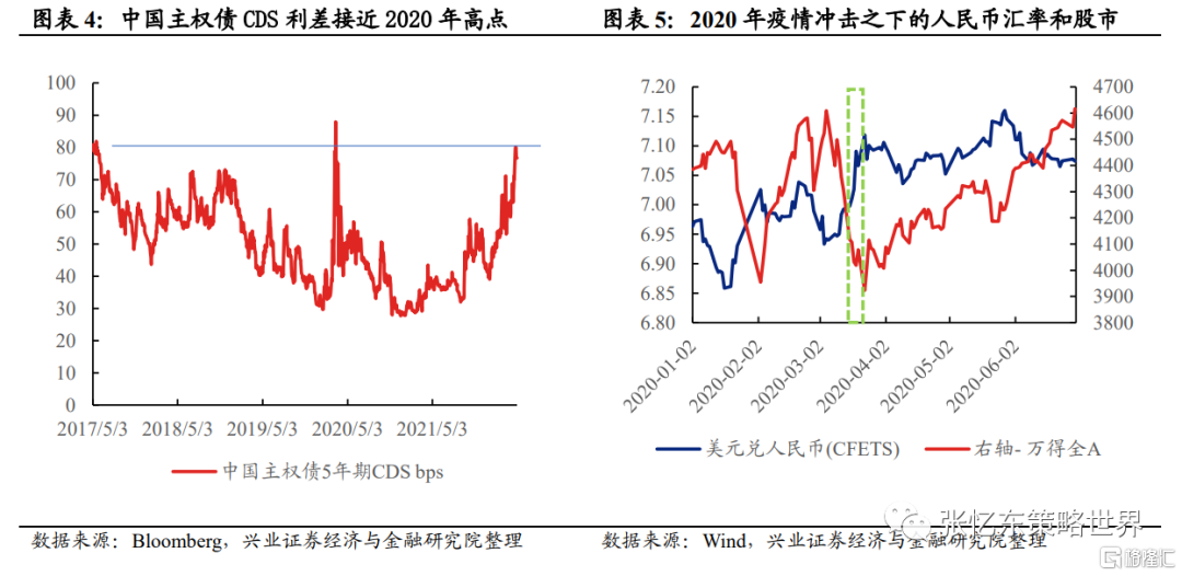 截至2022年4月29日,中国主权债5年期CDS为76.7bp,已经接近2020年疫情期间的极大值3月12日的87.9bp。