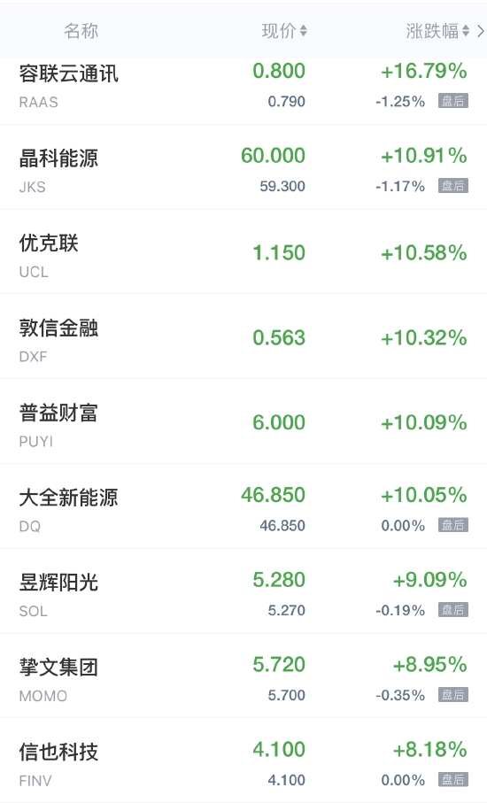 (截图来自新浪财经APP 行情-美股-中概股热门板块)下载新浪财经APP
