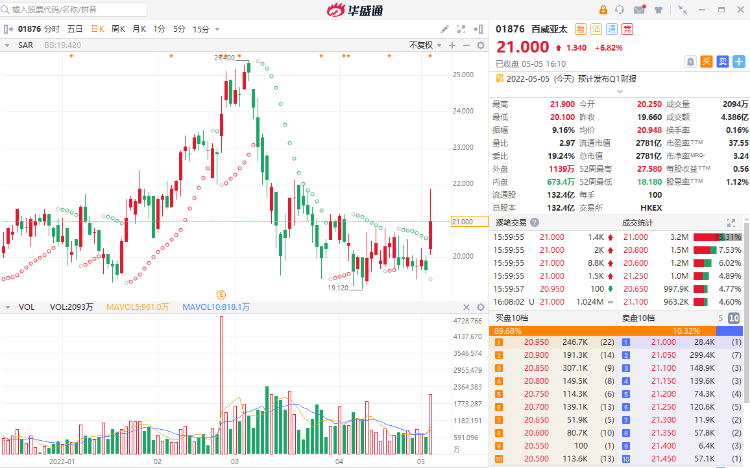 - 中金发研报指,百威正在经受成本上涨的考验,但成本管控能力和提价能力优于行业,或使得最终成本涨幅低于行业。且因韩国等海外市场疫情管控相对放开,或带来均价和市场份额双重扩张,维持百威亚太“跑赢行业”评级。