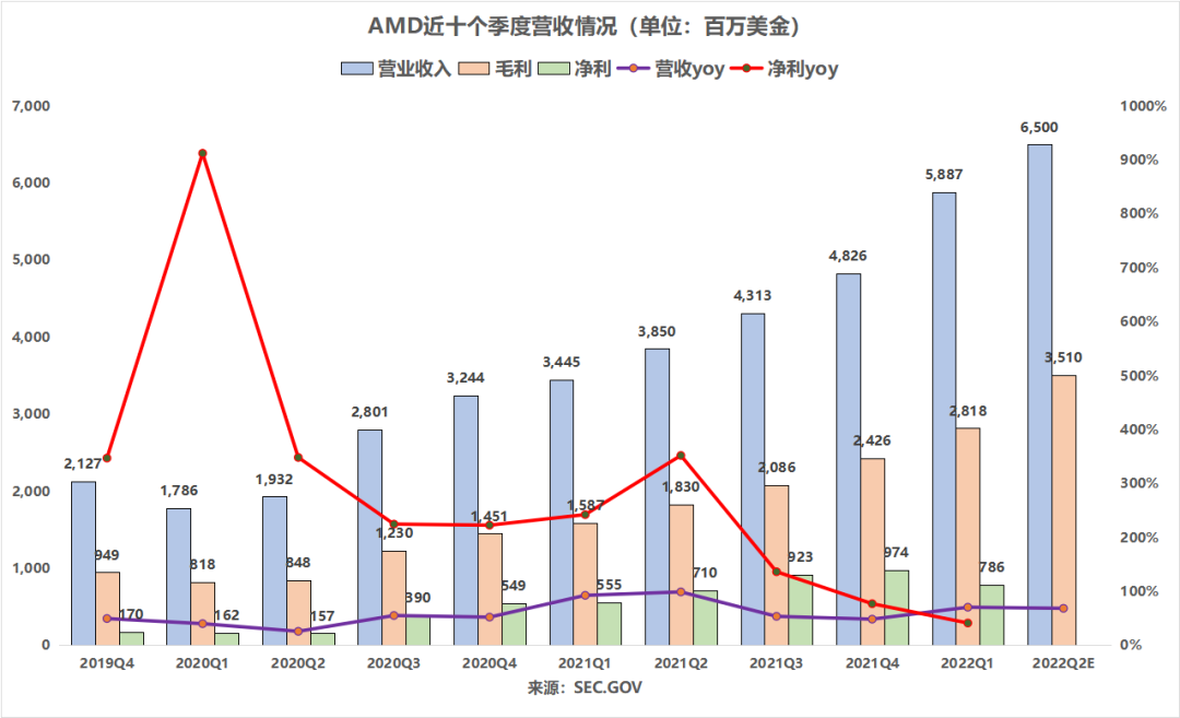 从整体来看,得益于收购赛灵思后的业绩并表,AMD财报全面超预期:Q1营收(含赛灵思)同比增70.9%至58.87亿(指引49-51亿,预期55.2亿,不包括赛灵思的营收同比增长55%,达到创纪录的53.28亿元)。
