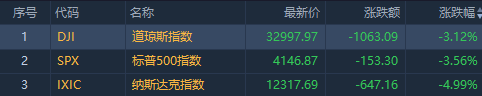 标普500指数创下上周五以来最大单日跌幅,11个主要行业板块全线下挫,跌幅至少达到1%。信息技术、非必需消费品和通信服务板块领跌。纳斯达克100指数则创出2020年9月以来最大跌幅,追踪蓝筹股的道琼斯工业平均指数下跌3.1%。