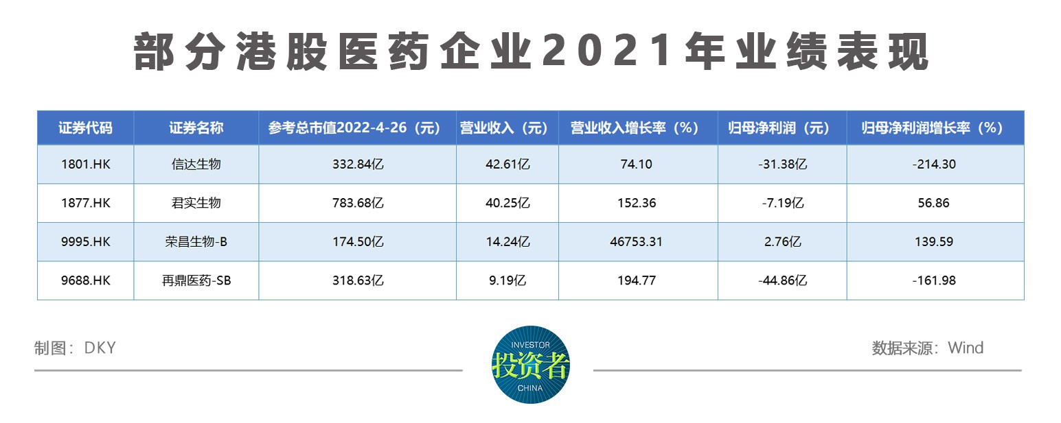从创新药企上看,国内资本市场的上市创新药公司主要集中在港股市场。国盛证券认为,港股创新药企年报成绩亮眼,创新结果开始兑现。信达生物(1801.HK)、君实生物(1877.HK)等第一梯队创新药企的账面现金逐步改善,足以支撑公司的经营与创新研发,而荣昌生物(9995.HK)商业化元年实现了营业收入翻倍增长。