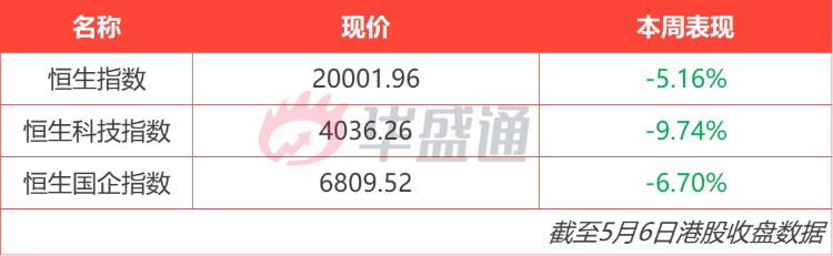 恒生指数本周跌5.16%,报20001.96点,本周恒生指数重挫逾1000点;恒生科技指数本周跌9.74%,报4036.26点;国企指数本周跌6.7%,报6809.52点。