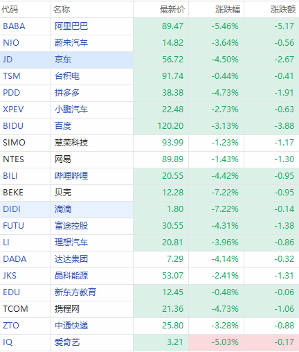 聚焦中概丨阿里大跌逾5%,蔚来跌超3%