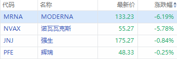 美疫苗股走跌,Moderna跌超6%,诺瓦瓦克斯跌超5%。消息面上,根据世卫组织(WHO)的一份最新报告,在2020年1月至2021年12月底期间,全球死于新冠肺炎的人数几乎是官方数据的三倍。这份报告是迄今为止其对这一疫情大流行中真实死亡人数的最全面分析。