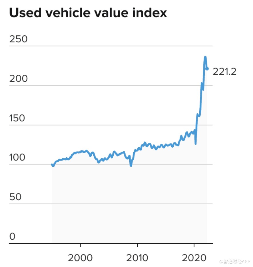 自新冠疫情以来,因半导体芯片持续短缺以及供应链问题,二手车价格随之水涨船高,导致通胀数据居高不下。值得庆幸的是,最新数据显示,美国的二手车批发价格已明显从1月份创下的历史高点下滑,这意味着与高通胀率有关的二手车高价时期可能已经过去。