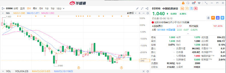 集团致力于成为一流的能源一体化方案解决商、工程总承包商、基建设施投资商、生态环境综合治理商、综合城市开发营运商,和建材及工业产品装备提供商。未来继续提高质量发展,加强新动能培育,推动转型升级,持续深化改革,强化管理等。可于现价1.04元附近吸纳,中长线可见1.70元,跌穿0.90元止蚀。