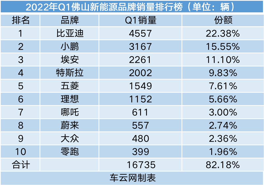 一季度,按销量计在佛山最受欢迎欢迎的新能源汽车品牌是比亚迪和小鹏,前面稳固的“比亚迪之后就是特斯拉”的排名格局被打破,特斯拉在佛山仅排在第四。