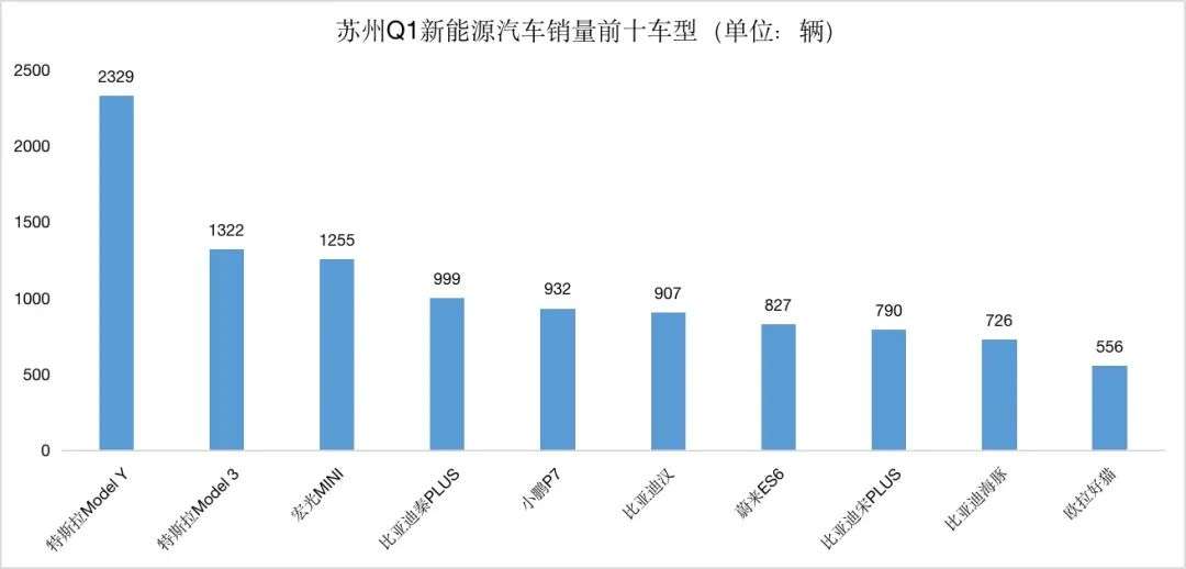 蔚来ES6仍在苏州一季度新能源汽车销量前十之列,排名第七。