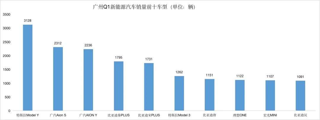 广汽埃安旗下的AION S和AIONY分列广州一季度新能源汽车销量排行榜的二、三位,但令人诧异的是,小鹏旗下的三款车型均未进入该榜单前十。