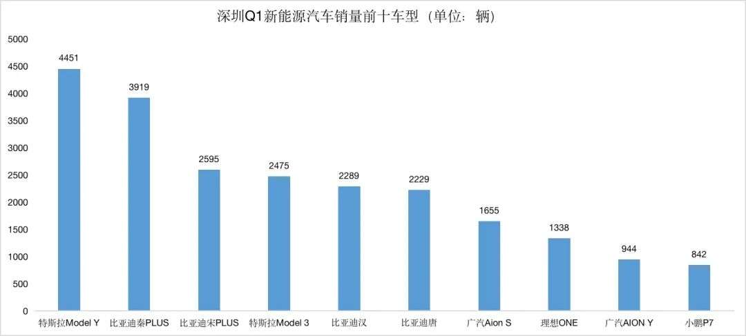 此外,广汽AION S、AIONY,以及小鹏P7等广东本土车型也在深圳第一季度的十大最卖座新能源汽车之列。前十中,仅有特斯拉的两个车型和理想ONE是非广东本土品牌车型。