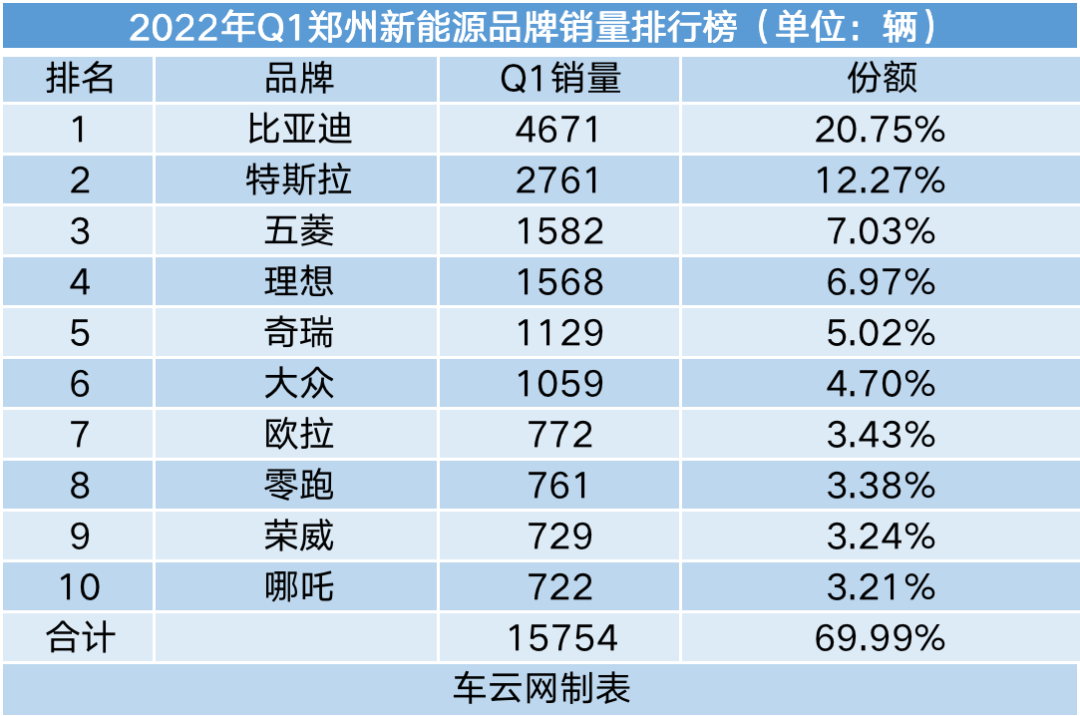 郑州在一季度销售了2.3万辆新能源汽车,渗透率为26%,甚至比北京还高。比亚迪和特斯拉仍是郑州最受消费者欢迎的新能源汽车品牌。