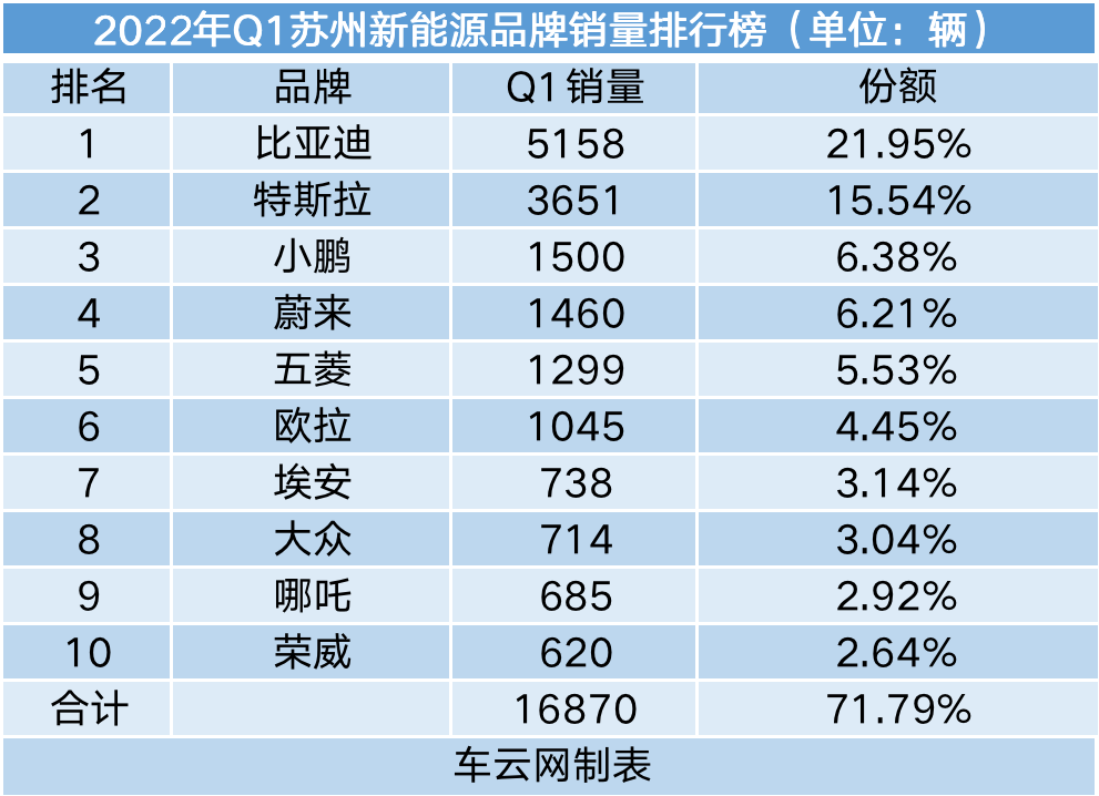 在一季度的苏州新能源汽车市场,比亚迪和特斯拉仍是雷打不动的第一和第二。不过,排名第三的是小鹏汽车,而非年初在此地举办过NIO DAY2022的蔚来汽车。NIO DAY的举办地通常是由用户投票选出。NIO DAY2022能落地苏州,说明蔚来的用户十分钟情于苏州,蔚来也是在苏州能排到第4名的位置。