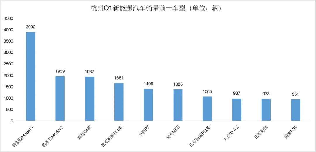 当然,以品牌计,来自杭州本地的吉利和零跑也位居杭州一季度按销量计的十大新能源汽车品牌之列。