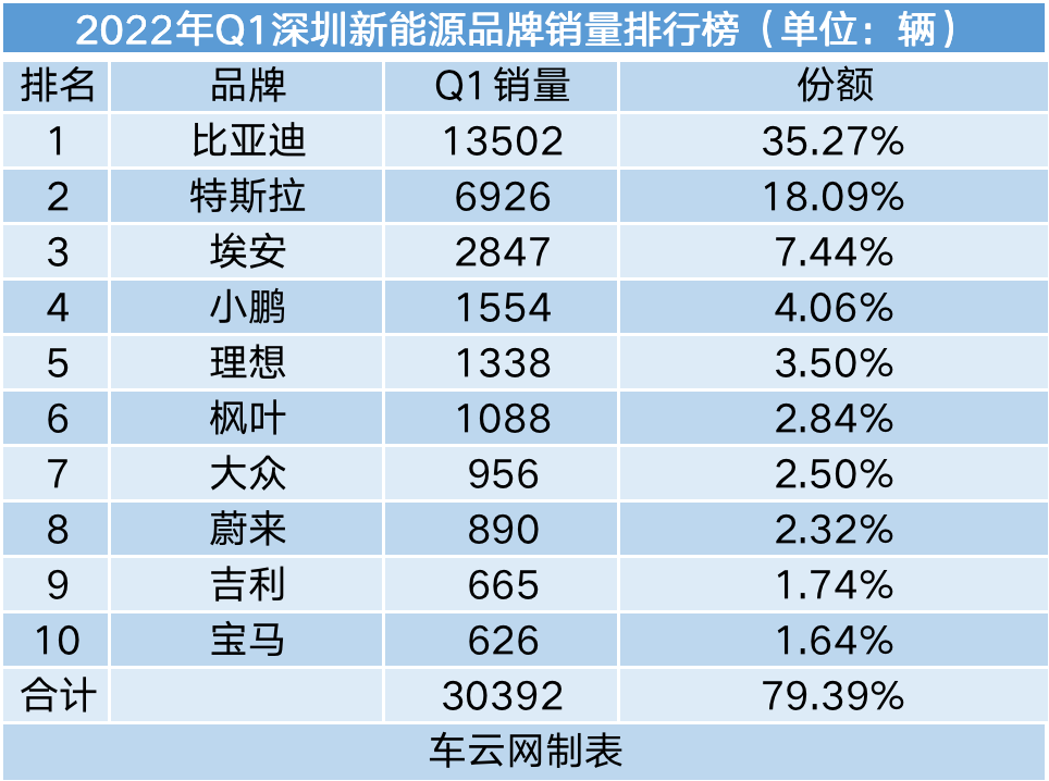深圳不仅是国内第一季度新能源汽车渗透率最高的城市,也是按销量排名的新能源汽车第二城市。当然,这里还是比亚迪的大本营所在地。