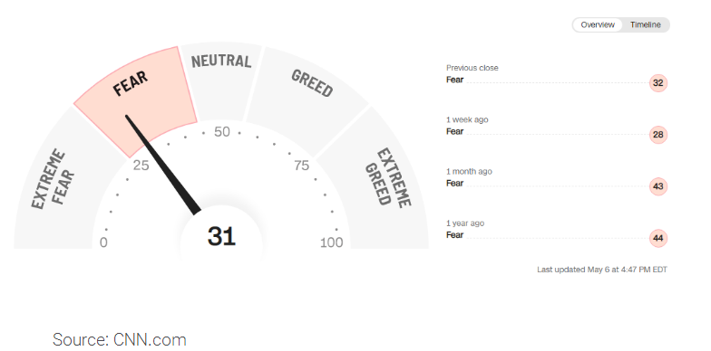 市场动荡也打压了投资者情绪。美国个人投资者协会(AAII)最新每周调查显示,个人投资者对未来六个月前景“看跌”的比例上升至59.4%,为2009年以来的最高水平。另一项情绪指标——市场恐惧与贪婪指数已经连续第四周处于恐慌区间。