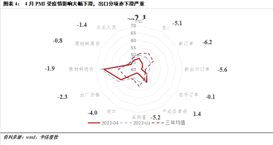 第三,中国经济受疫情的暂时冲击,出口预期走弱。美国商品特别是耐用品消费增速潜力透支,且海外自身供应体系恢复,以及中国受到疫情对供应体系的负面冲击。二三季度我国出口有逐步回落风险,四月PMI数据出口分项走弱是明显的征兆。
