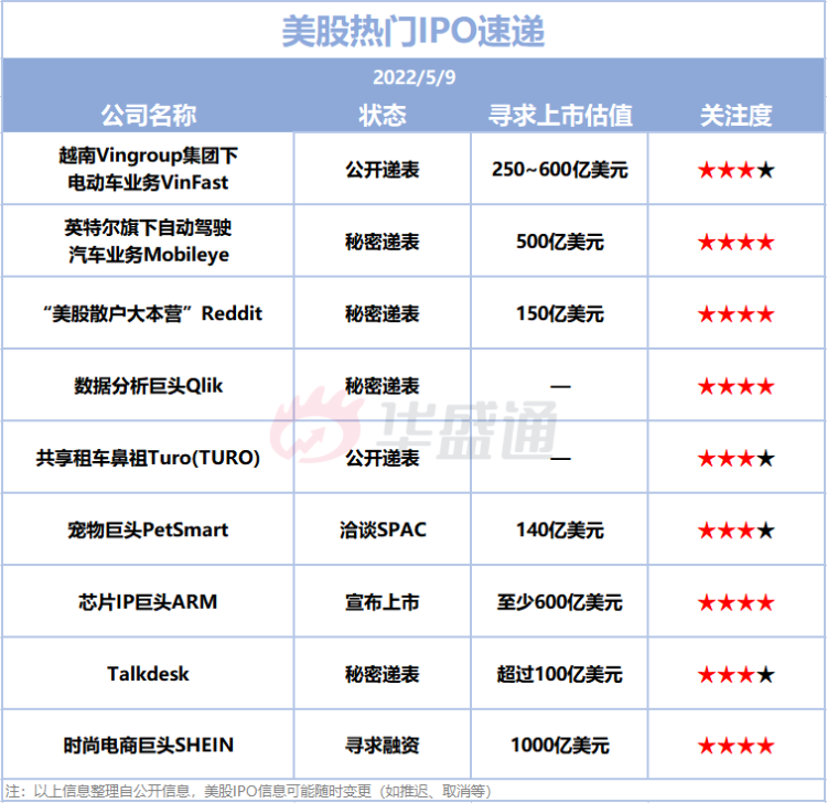 近两周美股新股市场有所回暖,共计有14只新股上市。其中,4月27日上市的TNON和中概股OST分别暴涨350%和891.5%;5月6日也迎来近四个月来最大一宗美股IPO博士伦,该股首日收涨11.11%。