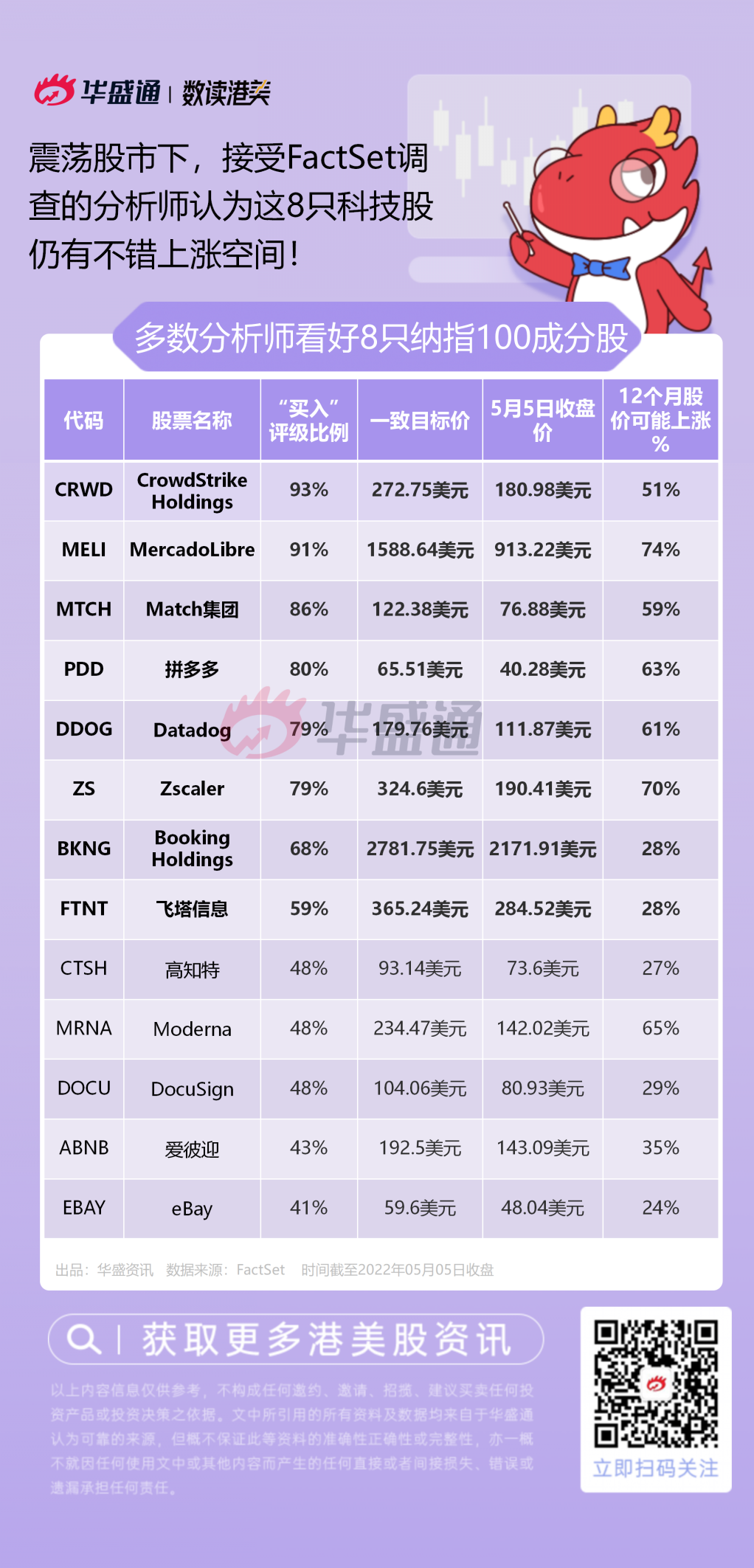 在这样的背景下,投资者该如何选择进退?MarketWatch投资专栏指出,虽然今年“逢低买入”可能不是一个很好的交易策略,但总有一些投资者想寻找一波“反弹机会”。据统计,接受FactSet调查的分析师认为,下面列表的前8只波动较大的股票值得再看看。