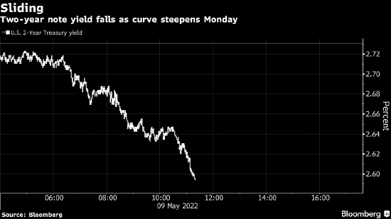 美国国债收益率曲线周一趋陡,因投资者纷纷涌向这种最安全的资产,此外美联储需以多快速度加息以遏制40年来最高通胀也面临不确定性。