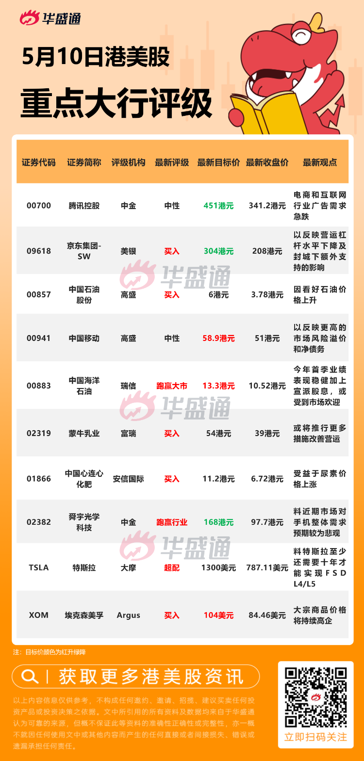 该行表示,考虑到上海及长春等部分城市未能于4月结束封城,相应下调今年第二季及全年预测,收入增长预测分别降至12%及15%,以反映营运杠杆水平下降及封城下对骑手及商家的额外支持的影响。美银相信,内地疫情或于下半年得以缓解,目标价则由320港元降至304港元,重申对京东的“买入”评级。