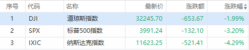 在过去的一个交易日,美股标普500指数跌破了4000点这个关键位置,最终跌3.2%以3991.24点收盘,纳斯达克和道琼斯指数分别跌4.29%和1.99%。